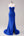 Glitrende blå blomst prinsesse Off The Shoulder rynket lang gallakjole med slids