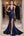 Støvet blå havfrue dyb v-hals pailletter gallakjole med slids