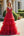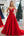 Glitrende rød A-linje dyb V-hals flæser balkjole med perler