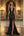 Sort havfrue v-hals satin lang militær boldkjole med slids