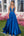 Kongeblå Satin dyb V-hals A-linje lang gallakjole med applikationer
